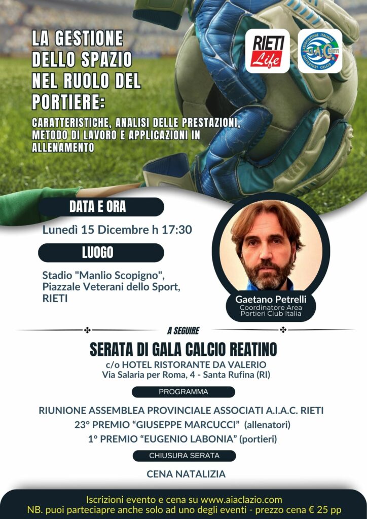 Lunedì 15 dicembre alle ore 17:30, presso lo Stadio “Manlio Scopigno” di Rieti, si terrà un importante appuntamento formativo dedicato a una delle figure chiave del calcio moderno: il portiere.